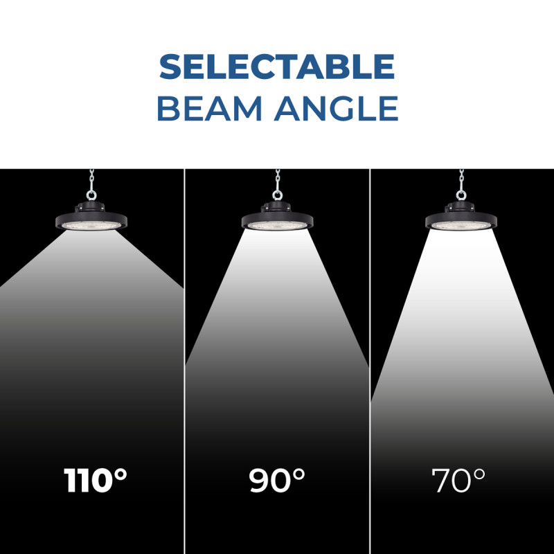 Campânula industrial LED UFO - CCT - 150W - 170lm/W - Driver LIFUD - Ângulo selecionável 110º/90º/70º - IP65