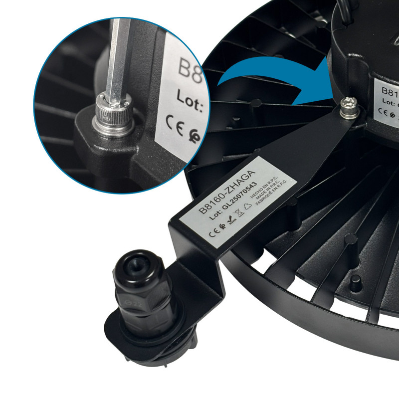 - Ajuste de potência: Possui um interrutor incorporado no driver que permite ajustar a potência entre 150W, 130W e 100W, dependendo das necessidades específicas do ambiente.