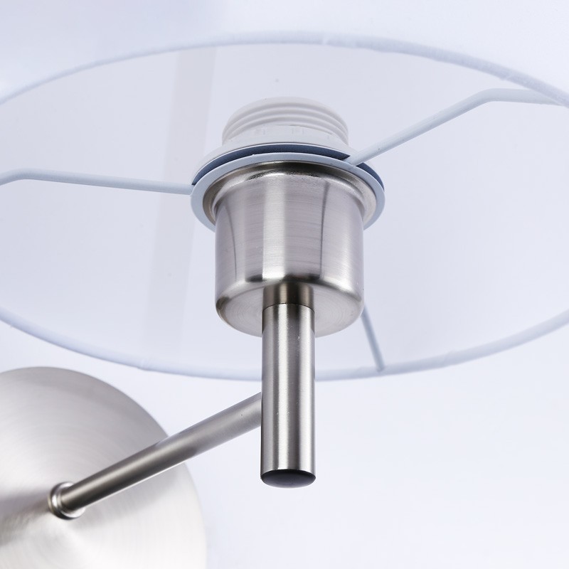 Elegante aplique de parede estilo clássico com cúpula de tecido e suporte de alumínio lacado com pintura em pó de alta qualidade.