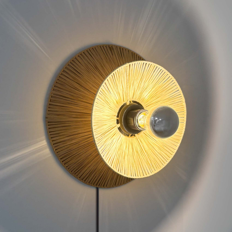 Aplique de parede de fibra natural Ráfia "HALLIE" - E27 - Interruptor e plugue