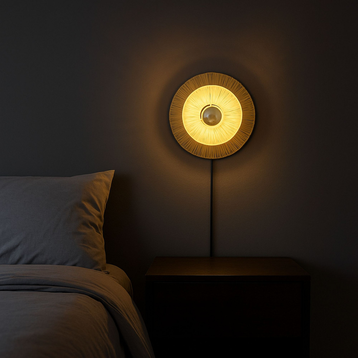 Este candeeiro de parede destaca-se pelo seu design fluido e orgânico, feito à mão com fibras vegetais que realçam o calor e a personalidade do espaço. Perfeito para salas de estar, quartos, corredores ou cantos de leitura.
