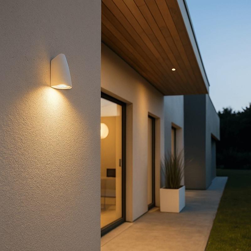 - Instalação versátil: Concebida para ser facilmente fixada em paredes ou pavimentos, ideal para fachadas, alpendres, degraus ou entradas exteriores.