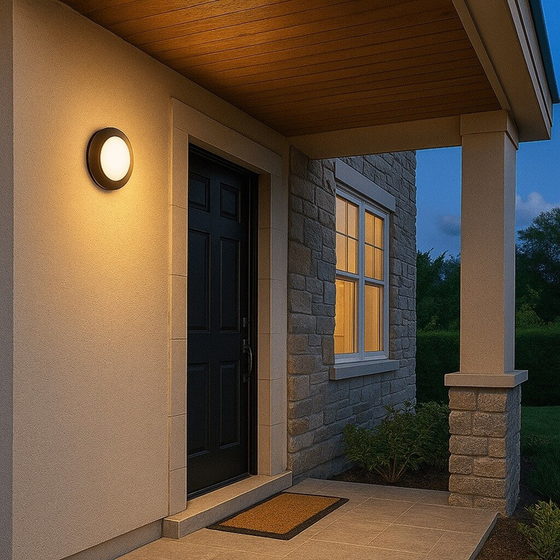 - Instalação versátil: Concebida para ser facilmente fixada em paredes ou superfícies verticais, ideal para fachadas, alpendres ou entradas exteriores.