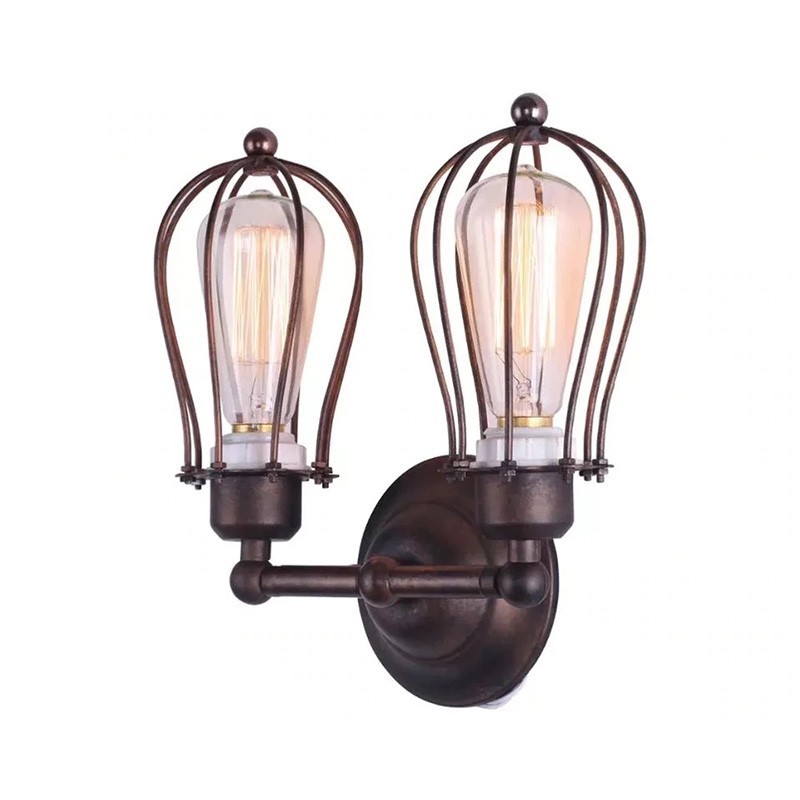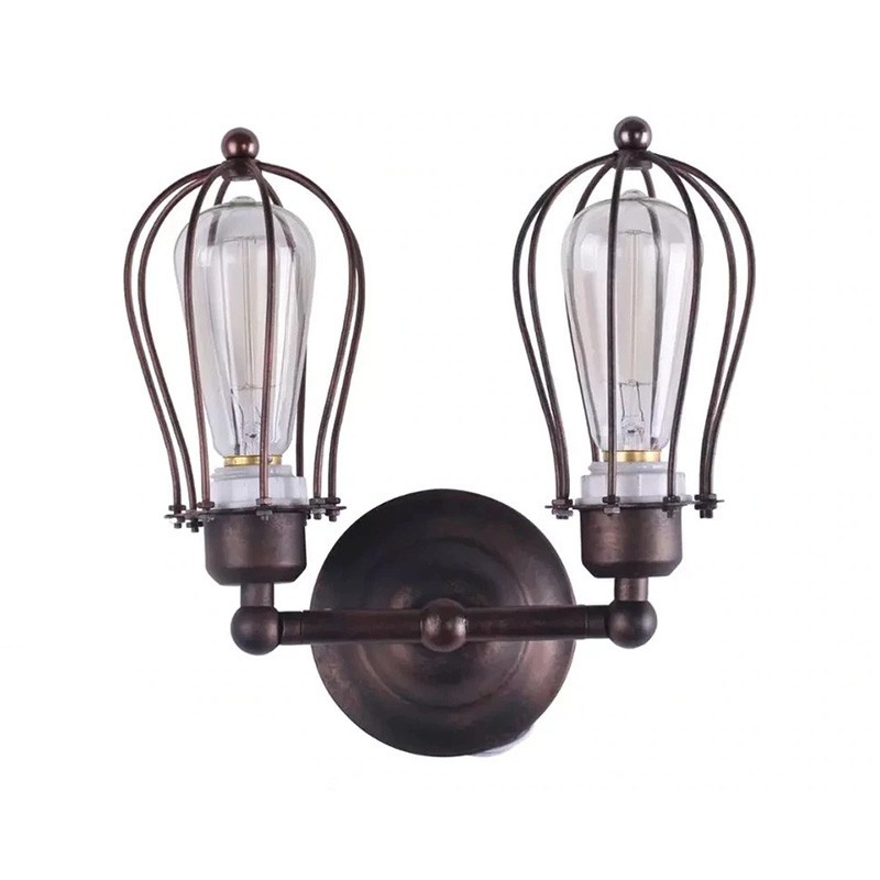 aplique de parede Merlo é um modelo de Candeeiro Vintage industrial, que oferece um toque clásico em todo lugar, como corredores, recebedores ou salas. Conta com duas jaulas móveis e removível, para  duas lâmpadas LED E27 do modelo EDISON ST64.