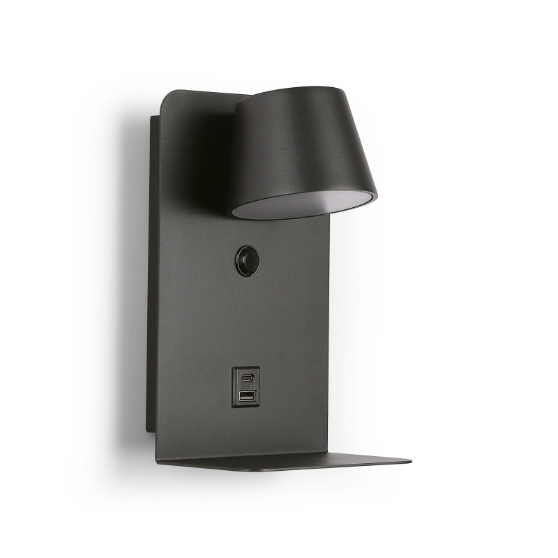 Aplique de parede para leitura "BASKOP" - Porta USB + USB-C - 6W
