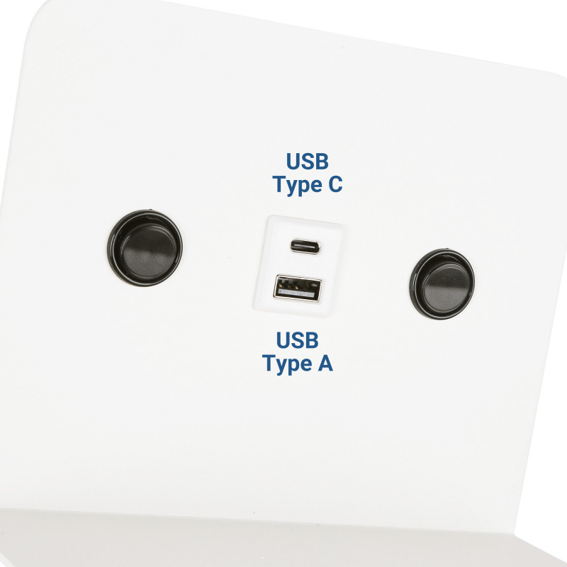 - Conectividade e controlo: Portas USB e USB-C para um carregamento cómodo dos seus dispositivos, com dois interruptores integrados para uma utilização prática.