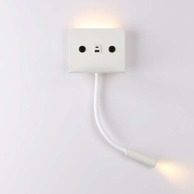 Aplique de parede para leitura "SLANGE 2" - 3W + 6W - Porta USB + USB-C