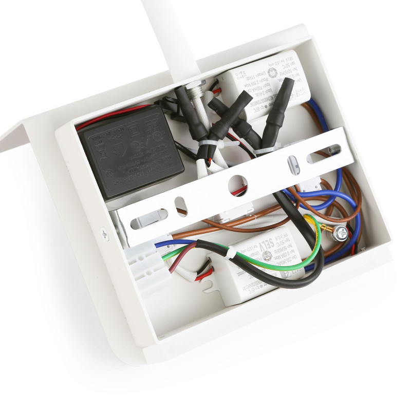Com um design de estilo nórdico, este candeeiro de parede integra-se facilmente em ambientes modernos, combinando estética com soluções práticas para iluminação e carregamento de dispositivos.