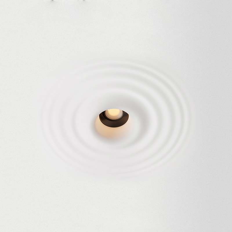 Esta luminária de encastrar foi concebida para se integrar perfeitamente em tectos de gesso cartonado, oferecendo um acabamento visual uniforme graças ao seu design ondulado desvanecido. Fabricada em gesso branco, pode ser pintada para se integrar em qualquer ambiente.