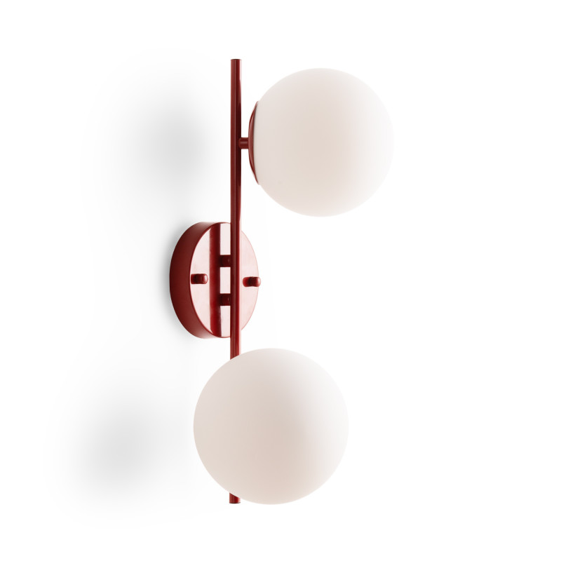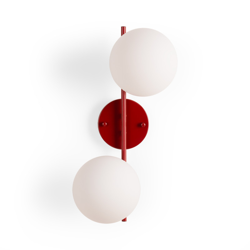 Possui uma rosácea e uma estrutura em alumínio sobre a qual são colocados dois abajures esféricos em vidro opalino de elevada transmissão luminosa, proporcionando uma iluminação brilhante e homogénea.