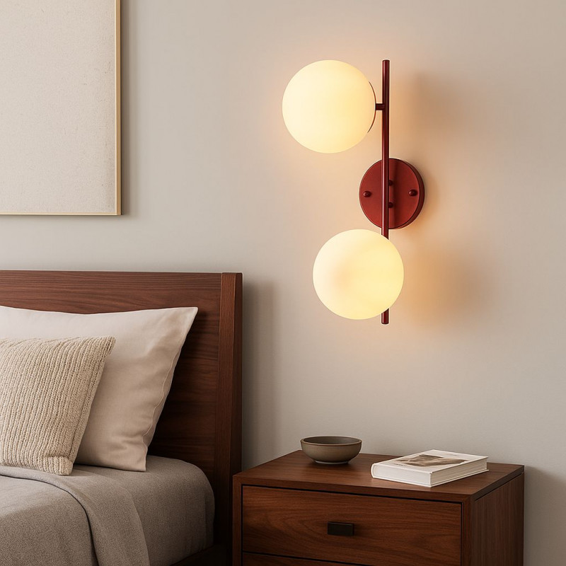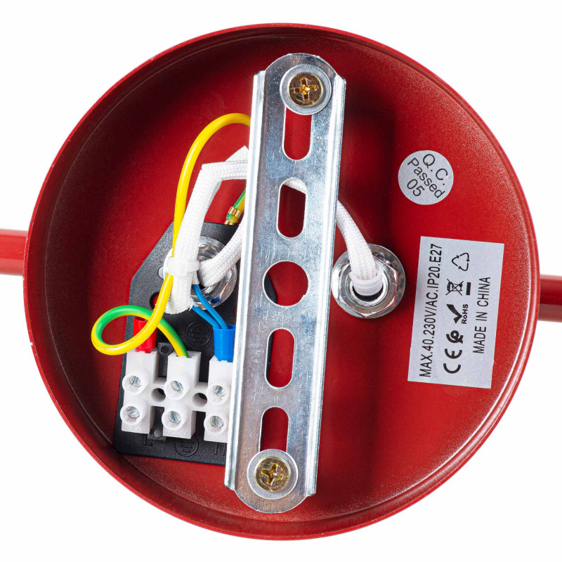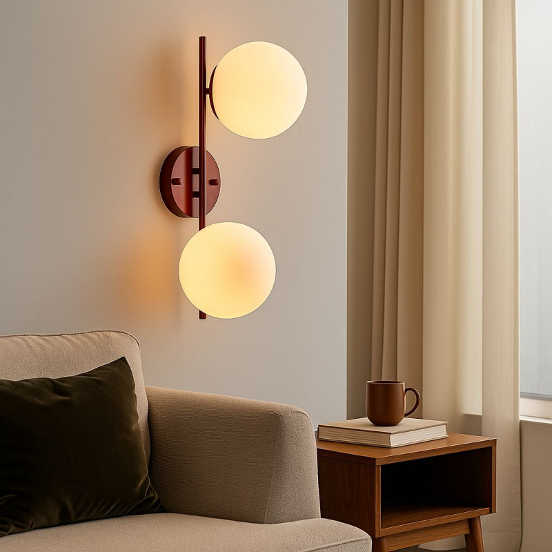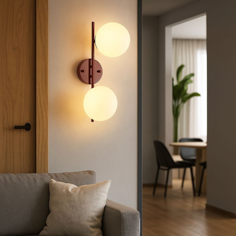 Incorpora dois casquilhos que aceitam uma lâmpada esférica E27 G45 (não incluída) com uma potência máxima de 40W.