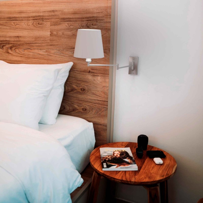 Este aplique de parede é especialmente útil como candeeiro de cabeceira, embora também possa ser utilizado como candeeiro de leitura noutros espaços interiores.