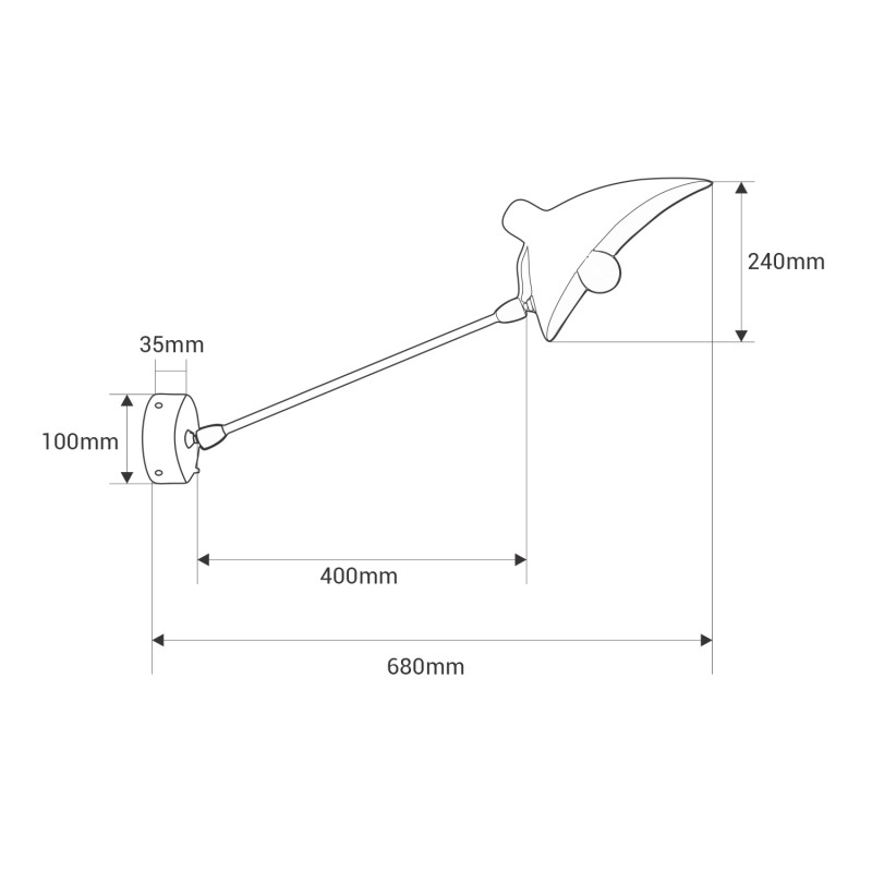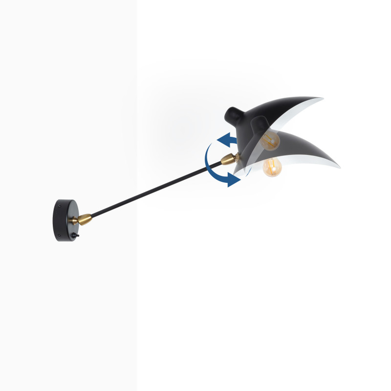 - Design ajustável e funcional: O seu braço estende-se a partir de uma roseta central e permite direcionar a luz para o ponto desejado. Além disso, o abajur também é regulável, oferecendo uma iluminação focada e versátil.