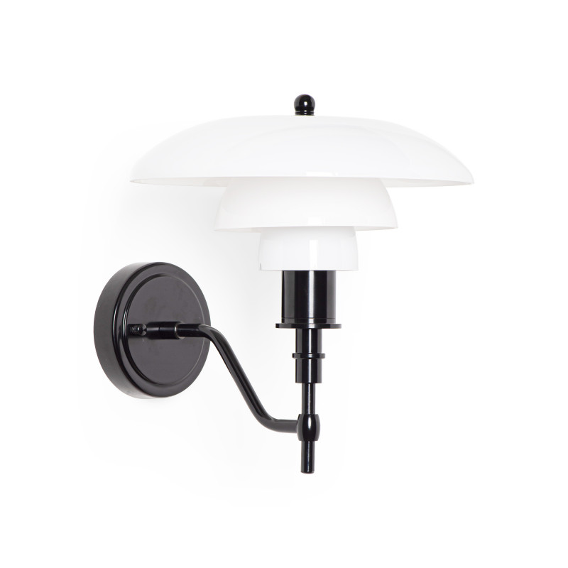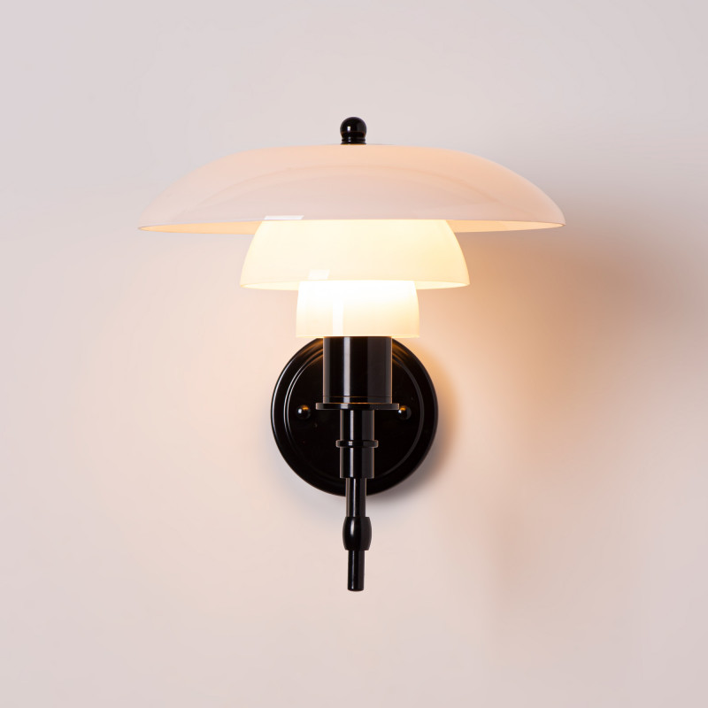 Candeeiro de parede de design requintado com abajur em vidro opalino triplo e base em alumínio.