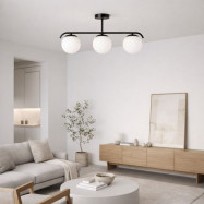 Candeeiro de teto "Talí" cuidadosamente concebido com três requintadas esferas de vidro opalino.