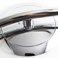 - Design sofisticado: É composto por uma elegante estrutura curva em alumínio com acabamento dourado mate e uma esfera de vidro opalino com elevada transmissão de luz.