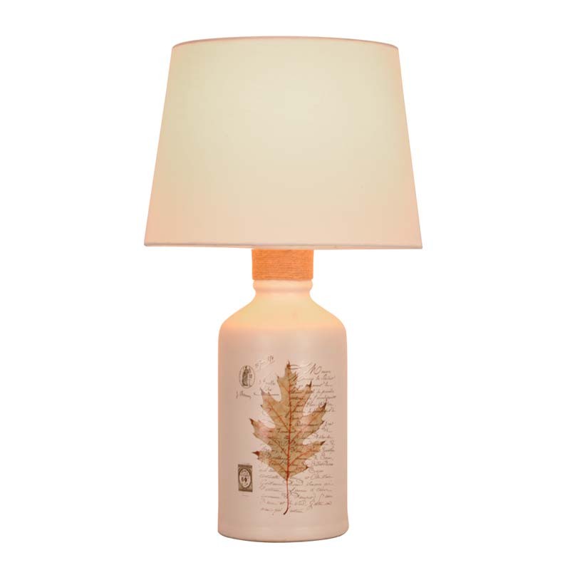 Candeeiros de mesa em cerâmica com um design clássico e elegante e atenção aos detalhes. Design clássico branco com desenho original de folhas e caligrafia na frente. Corda de embrulho na parte inferior do casquilho E27. O abajur ideal para criar um visual aconchegante e clássico em sua casa. A estrutura de tecido pode ser facilmente removida para caber na lâmpada LED E27, não incluída.