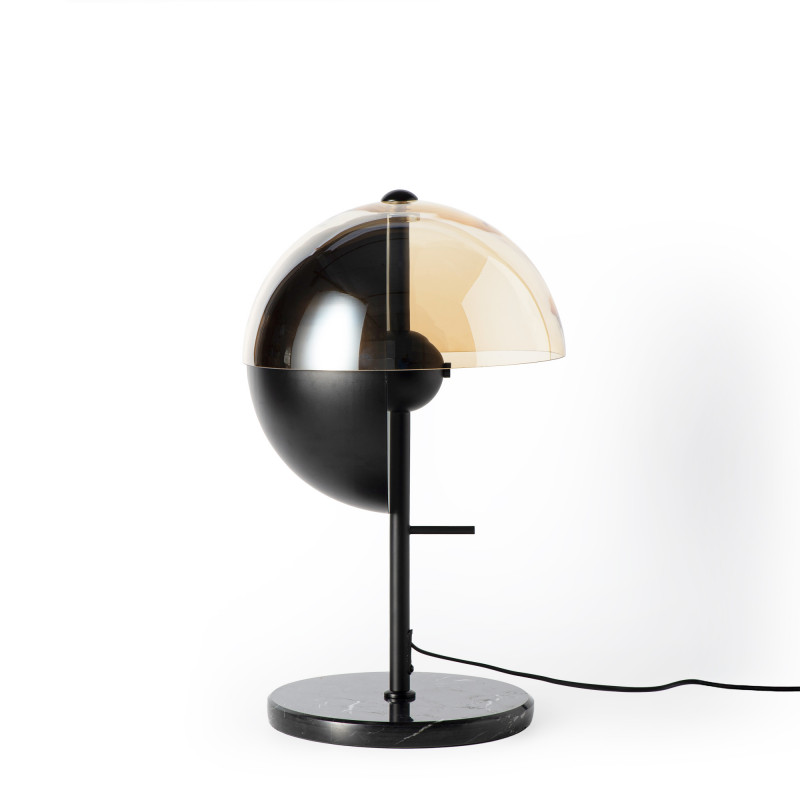 - Design sofisticado: possui um abajur esférico em vidro fumado com efeito âmbar, montado numa base de mármore firme. Um design elegante que confere carácter e presença a qualquer divisão.