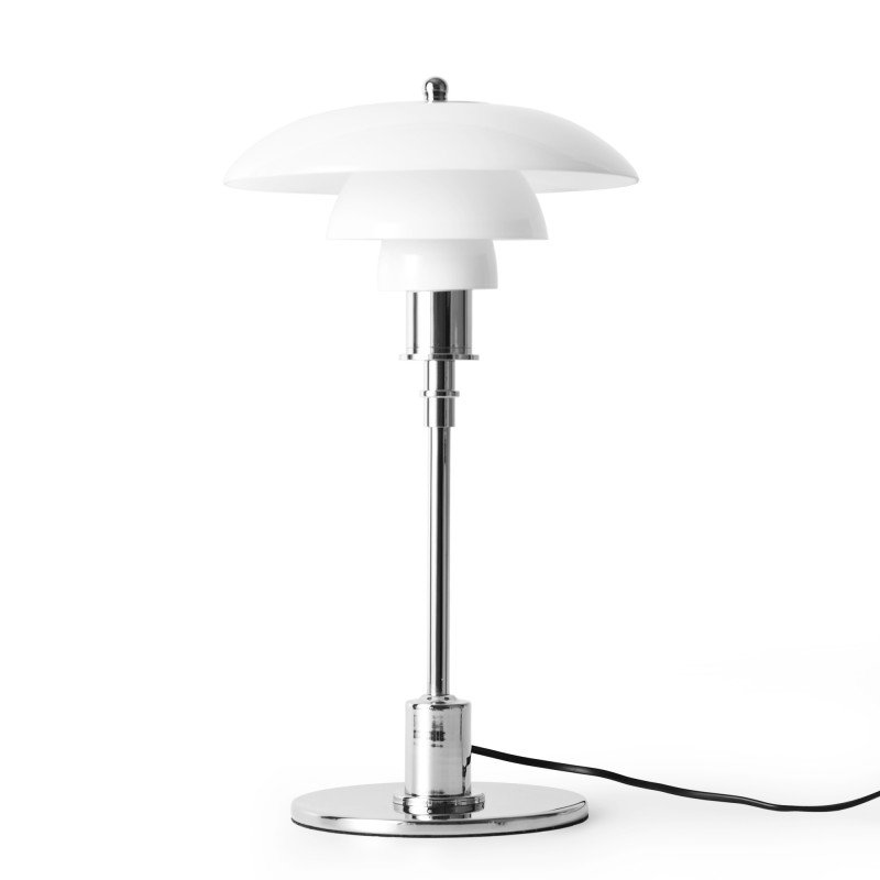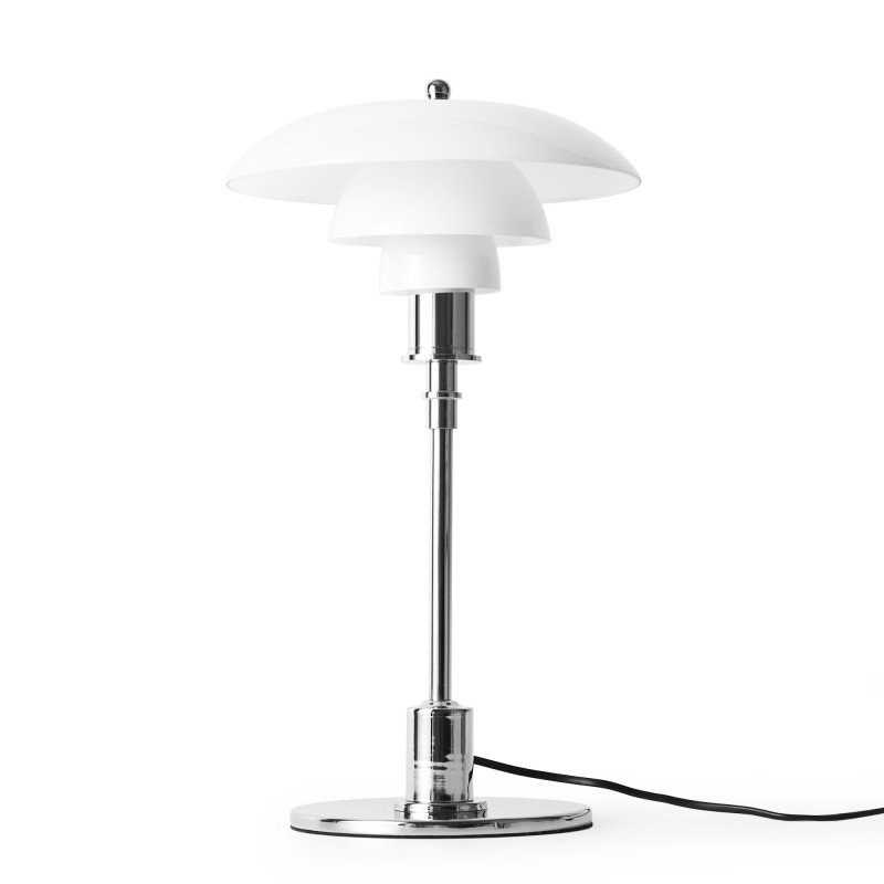 O seu design baseia-se num sistema de três abajures reflectores que direcionam a luz para baixo. Os abajures são feitos de vidro opalino e estão posicionados a uma distância exacta uns dos outros para proporcionar uma iluminação suave, difusa e sem reflexos.