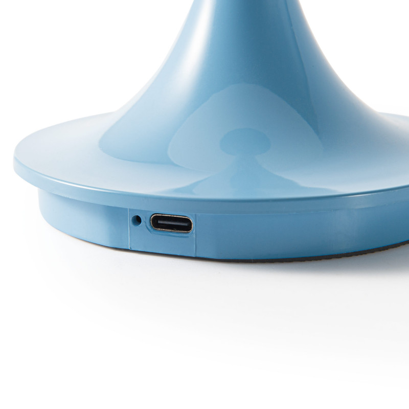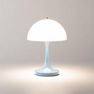 Candeeiro de mesa LED sem fios com um design moderno e versátil.