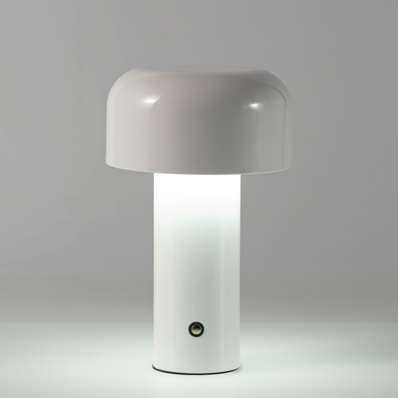 Candeeiro de mesa LED sem fios com um design moderno e versátil.