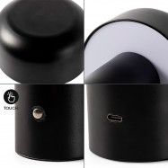 Candeeiro de mesa LED sem fios com um design moderno e versátil.