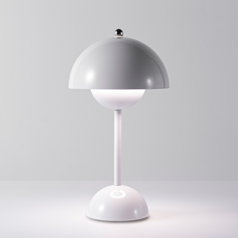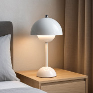 Candeeiro de mesa LED sem fios com um design moderno e versátil.
