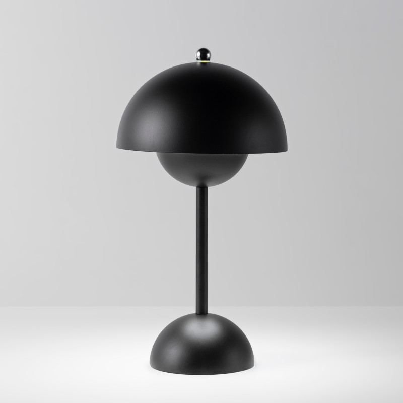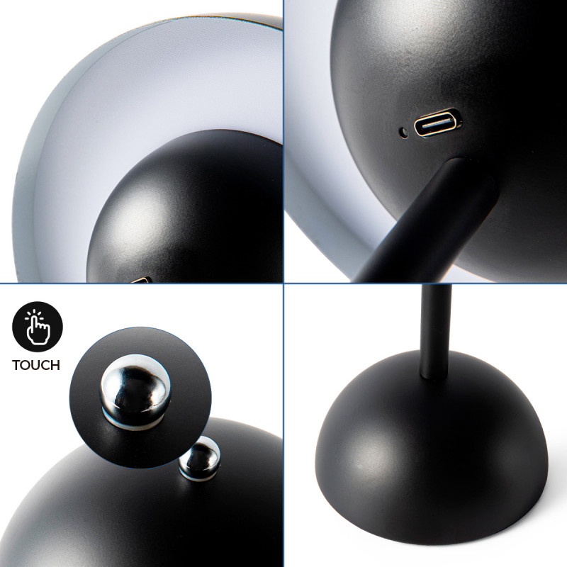 Candeeiro de mesa LED sem fios com um design moderno e versátil.