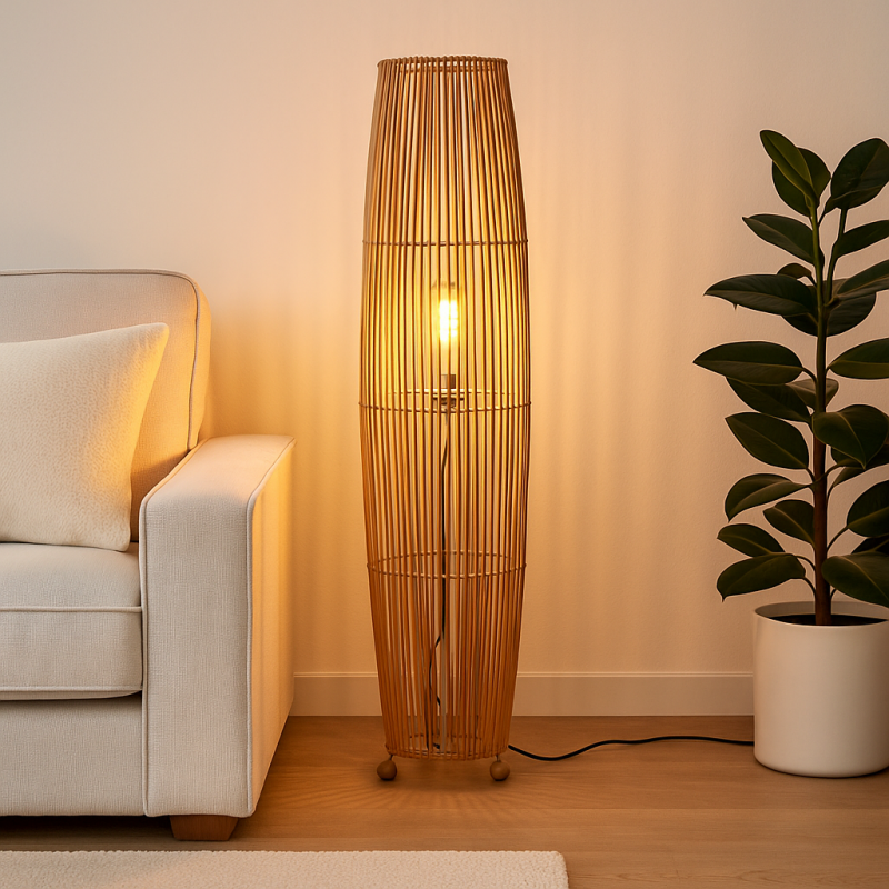 Candeeiro de pé "LINNEA": iluminação artesanal e natural