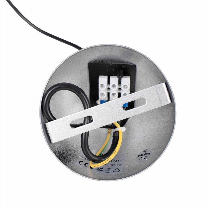 Este candeeiro é compatível no máximo com uma lâmpada E27 do tipo A65 e tem um cabo de 83 cm, de altura regulável a partir da roseta.