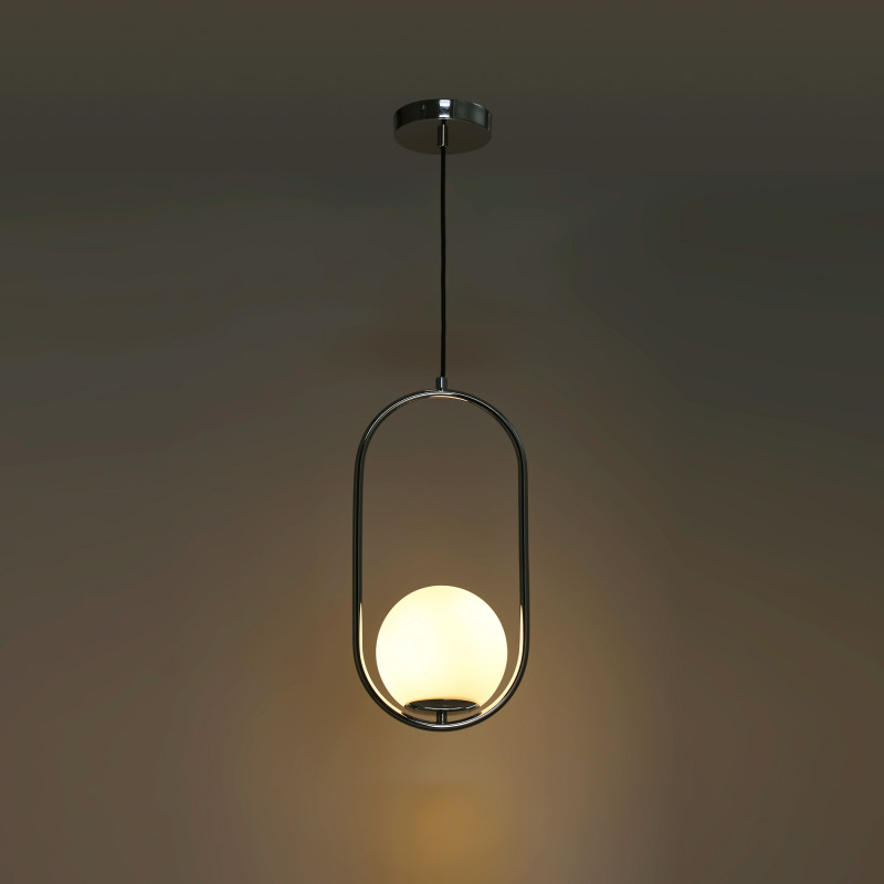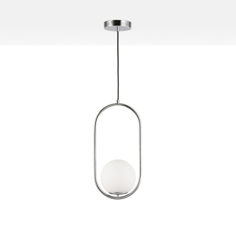 - Design minimalista: Com uma esfera de vidro opalino suspensa numa estrutura de alumínio em acabamento dourado ou cromado, este candeeiro adapta-se perfeitamente a diferentes estilos decorativos.