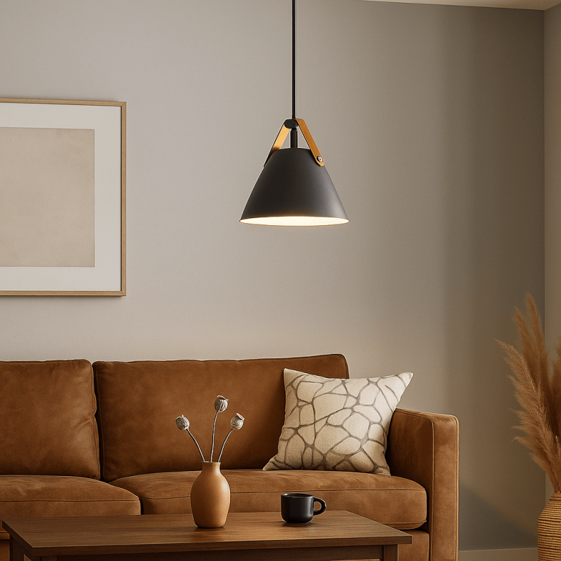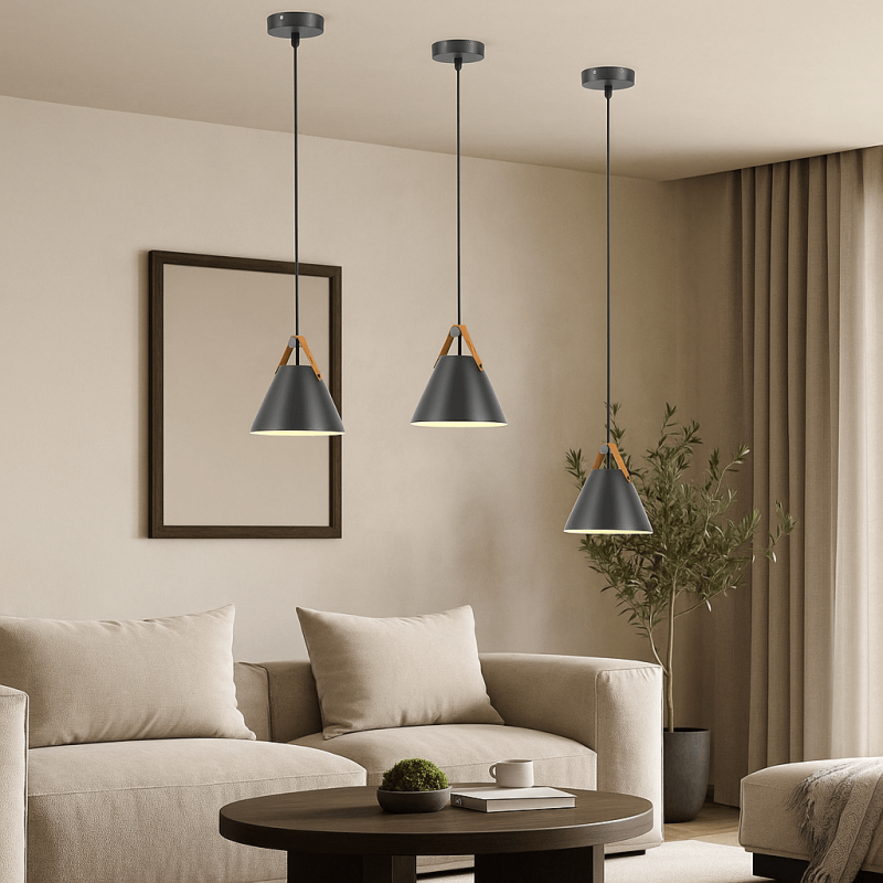 Adicione o toque escandinavo ao design moderno de qualquer cômodo da sua casa ou empresa. Luminárias pendentes nórdicas em alumínio e couro, com uma textura única e um design simples e original.