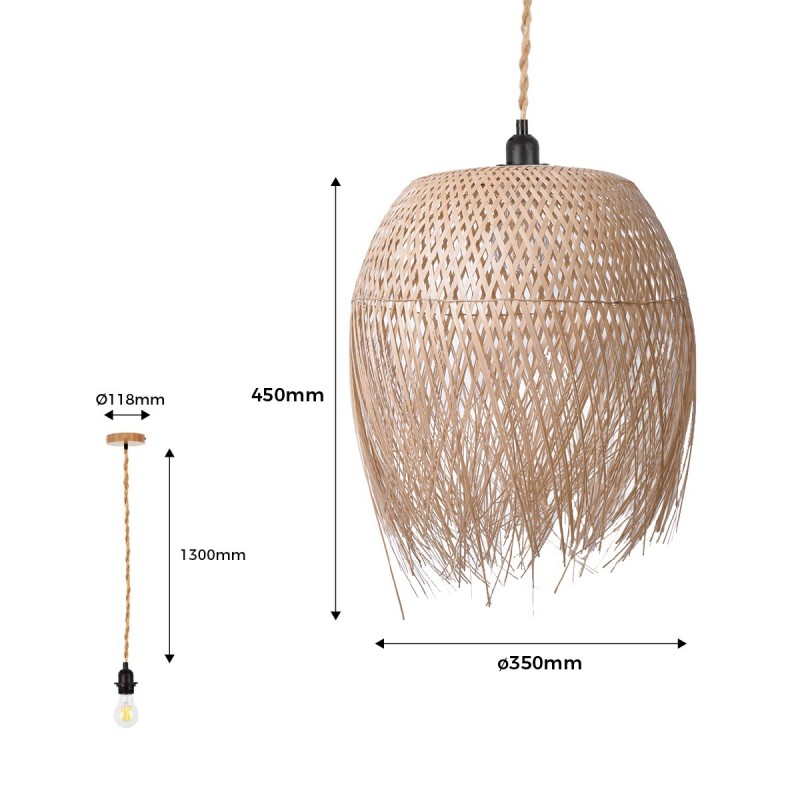 Nosso candeeiro "JAVA" é feito artesanalmente com fibras de rattan perfeitamente entrelaçadas.