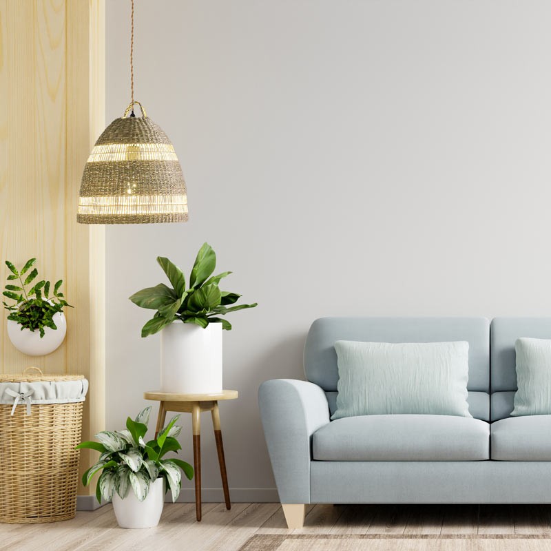 O candeeiro pendente "Ikken",  de estilo boémio, é uma peça única e artesanal, fabricada com fibras de vime resistentes e duráveis. Seu design exclusivo o torna perfeito como elemento decorativo em diferentes espaços internos, seja em uma sala, quarto, cozinha ou até mesmo em lojas e restaurantes.