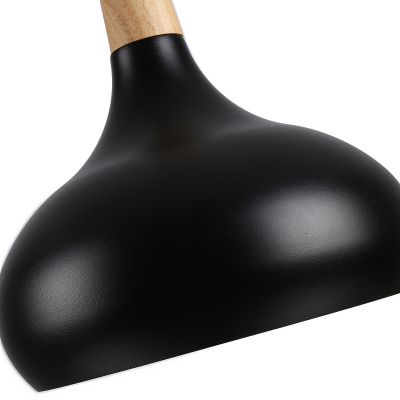 A estrutura metálica deste candeeiro integra-se harmoniosamente com o pormenor em madeira natural, proporcionando um equilíbrio visual único que combina modernidade e aconchego.