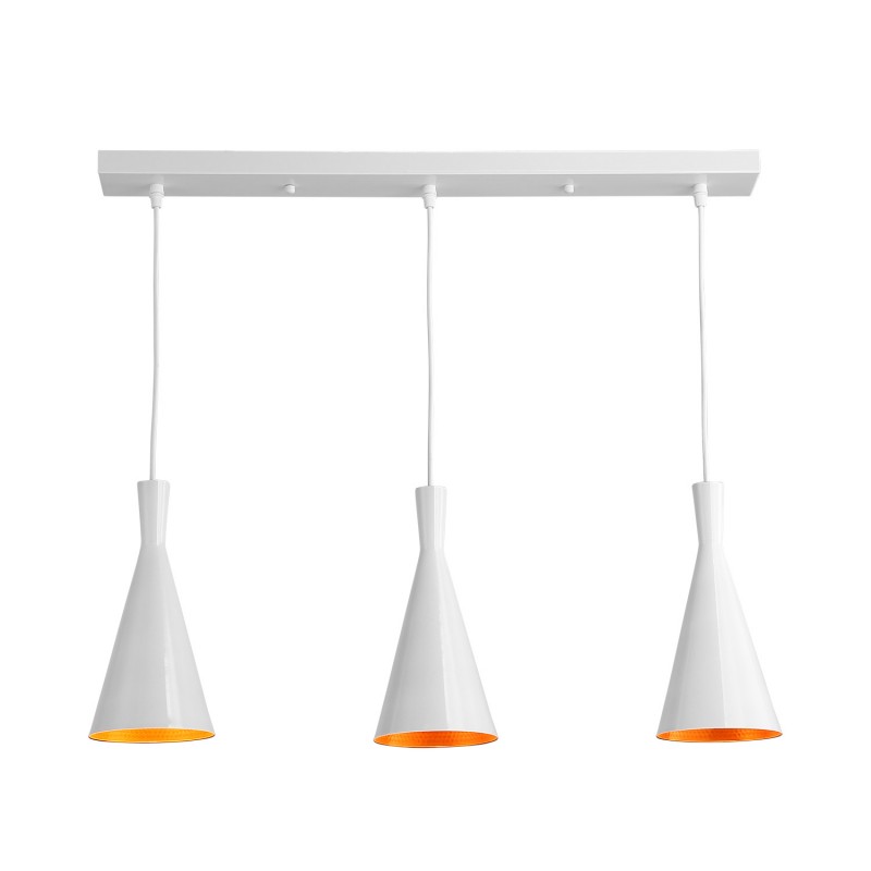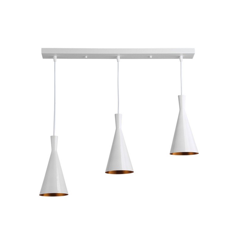 Possui três lâmpadas suspensas esbeltas, cuja altura pode ser regulada a partir dos cabos, permitindo uma iluminação ajustável de acordo com as necessidades de cada utilizador.