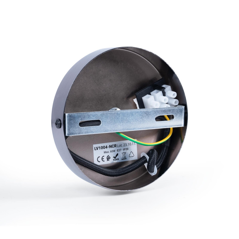 É fornecida com uma roseta e um cabo têxtil preto de 1,9 metros de comprimento, para regular a altura.