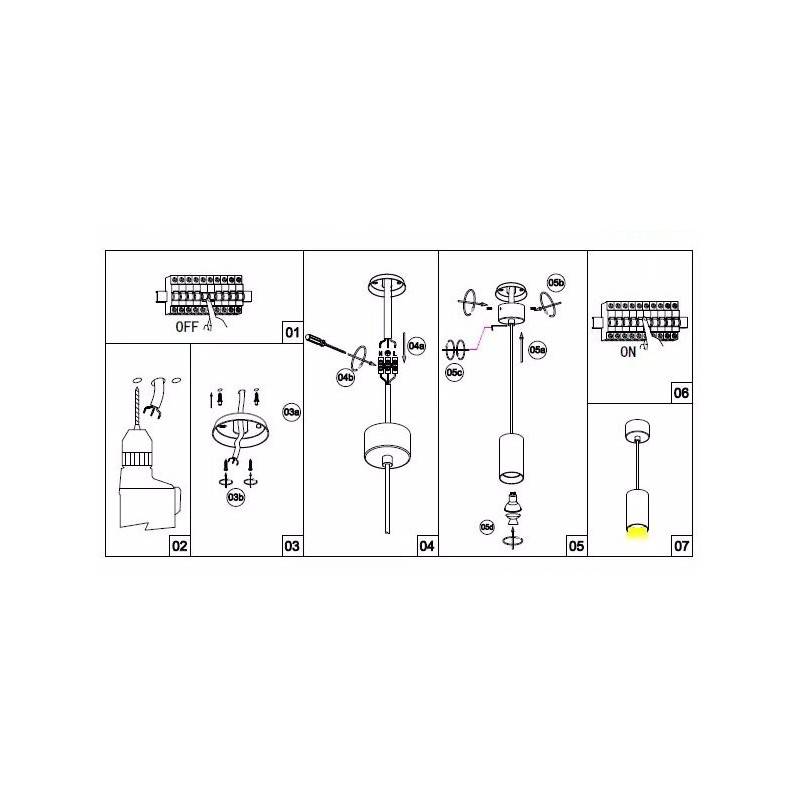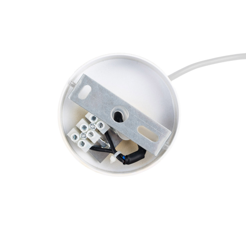 Aceita uma lâmpada GU10 com uma potência máxima de 50W e tem um cabo de 100cm, ajustável em altura a partir da roseta.