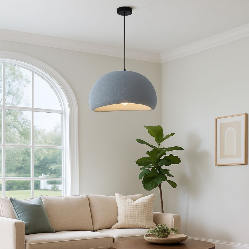 Candeeiro suspenso em resina com um acabamento texturado. O seu design artesanal e os seus tons neutros conferem calma e harmonia visual a qualquer ambiente.