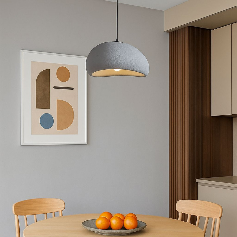 Candeeiro suspenso em resina com um acabamento texturado. O seu design artesanal e os seus tons neutros conferem calma e harmonia visual a qualquer ambiente.
