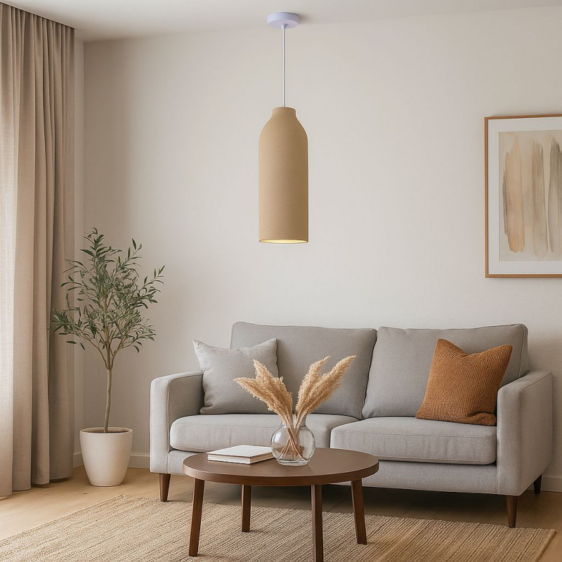- Design texturado: abajur com acabamento rugoso que realça a sua estética artesanal.