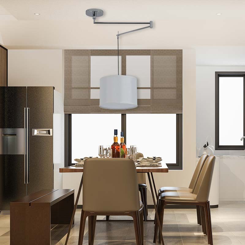 Dá estilo e luz quente a qualquer espaço. Braço articulado e acabamento cromado.