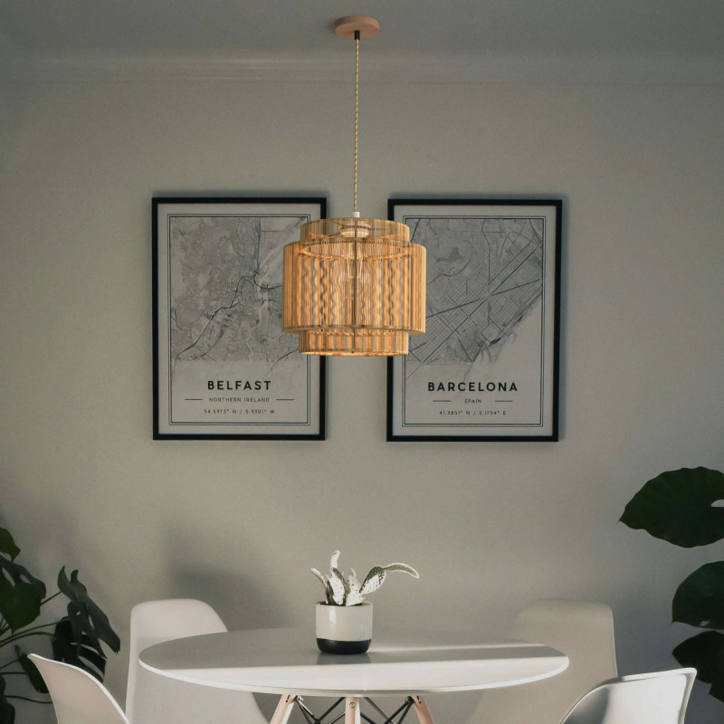 Este candeeiro feito de fibras naturais dá um toque pessoal e distinto, liga-nos ao ambiente e é uma escolha ecológica.
