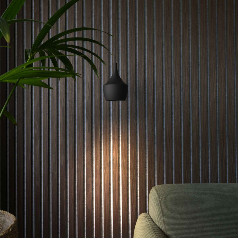 - Design elegante: Feito de alumínio com um acabamento em preto mate, a sua silhueta elegante e esguia acrescenta carácter aos seus interiores.