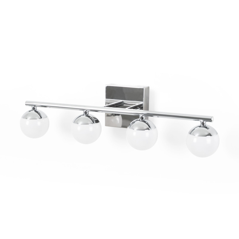 - Design moderno: barra cromada com 4 esferas difusoras (3W cada) e um comprimento total de 49 cm.