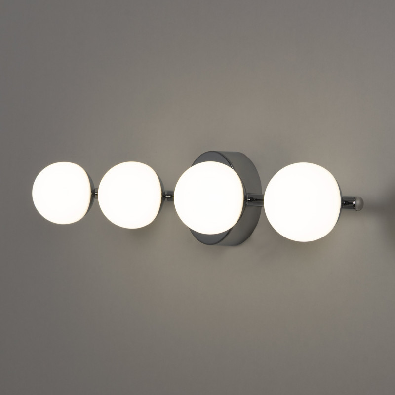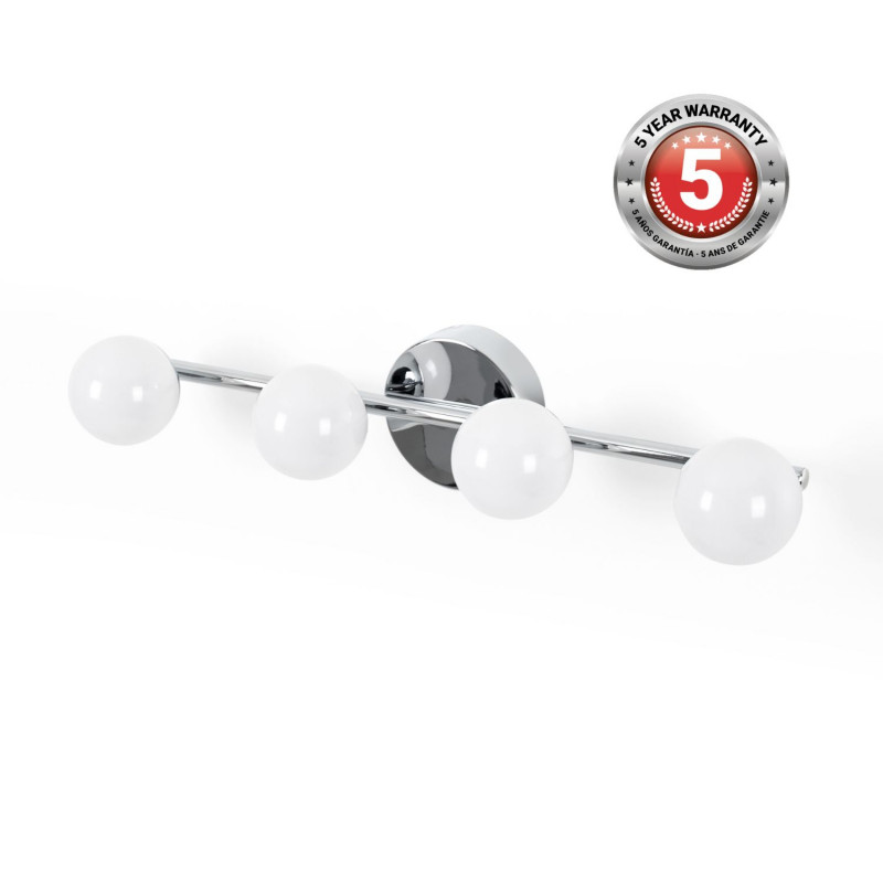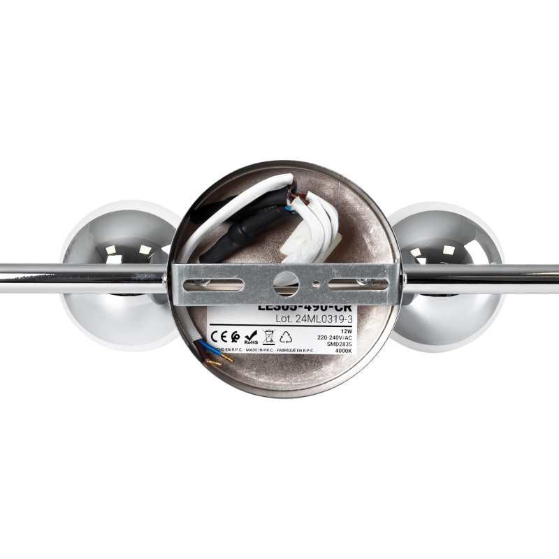 - Design moderno: barra cromada com 4 esferas difusoras (3W cada) e um comprimento total de 49 cm.