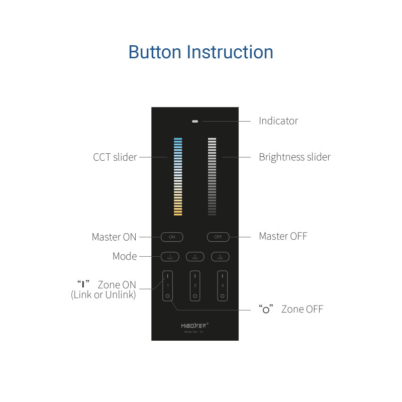 Este controlo remoto vertical CCT é uma solução inteligente e elegante para controlar a luminosidade e a temperatura da cor em sistemas de iluminação comerciais ou residenciais.