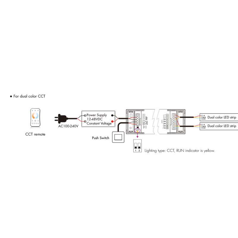 - Compatibilidade: Compatível com tiras de LED monocromáticas de 12-48V, CCT, RGB, RGBW e RGB + CCT.