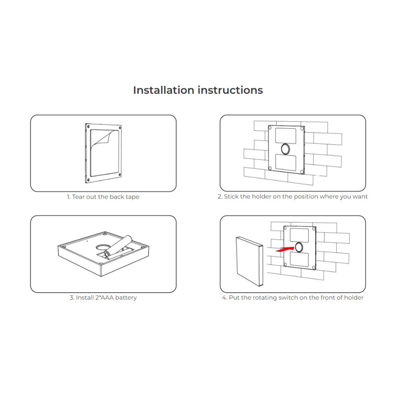 A instalação é fácil: a base autocolante é fixada à parede e o painel é colocado na parede e mantido firmemente no lugar por magnetismo.