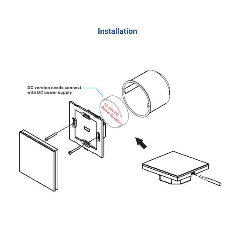 Dispositivo tátil de encastrar RF 12-24V-DC - regulador RGBW de iluminação LED 4 zonas - SUNRICHER Perfect RF